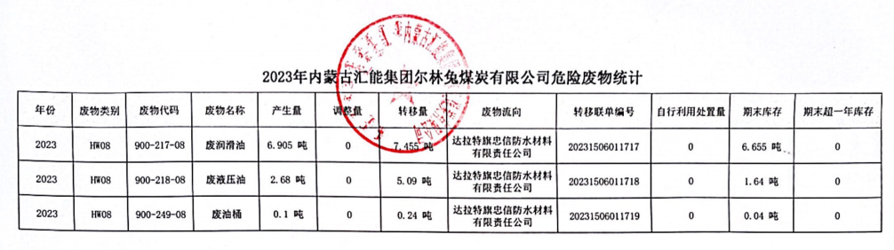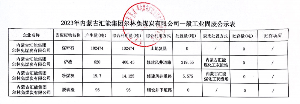內蒙古匯能集團爾林兔煤炭有限公司 固體廢物公示信息