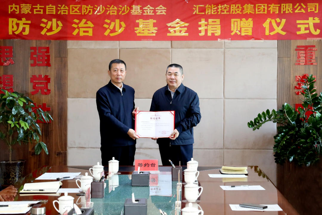 匯能控股集團向內蒙古自治區(qū)防沙治沙基金會捐贈儀式在呼和浩特市舉行