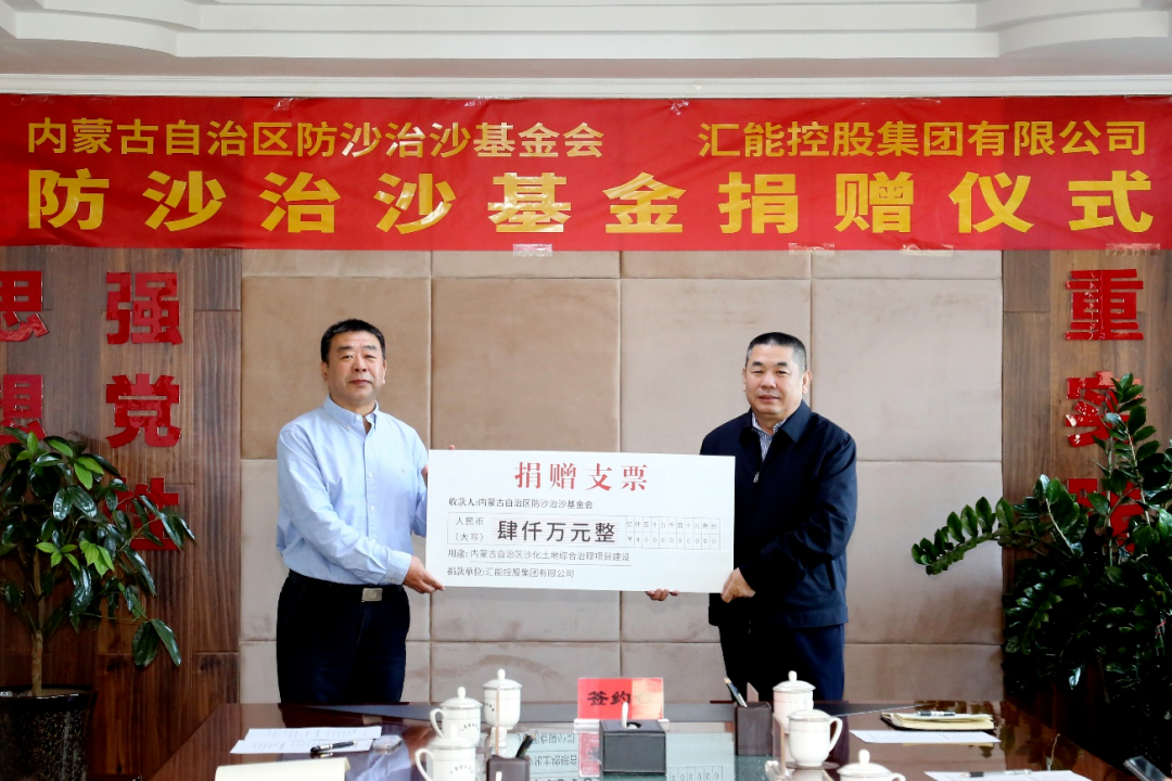 匯能控股集團向內蒙古自治區(qū)防沙治沙基金會捐贈資金4000萬元